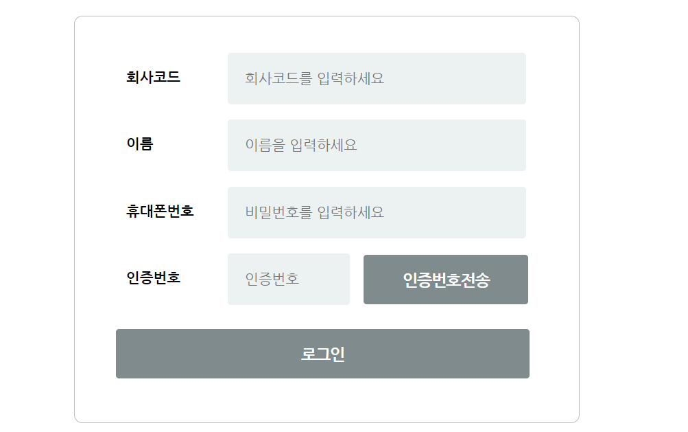 기부금 영수증을 발급받기 위해서는 먼저 로그인을 해야 하는데요. 로그인시 회사코드와 이름, 휴대폰번호 인증을 완료해야 합니다.