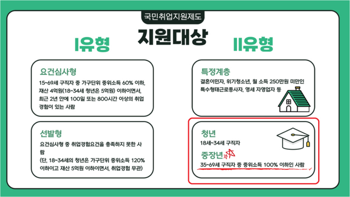 - 대상: 중장년층(대개 40세 이상)으로, 일정 기간 이상 실업 상태인 경우