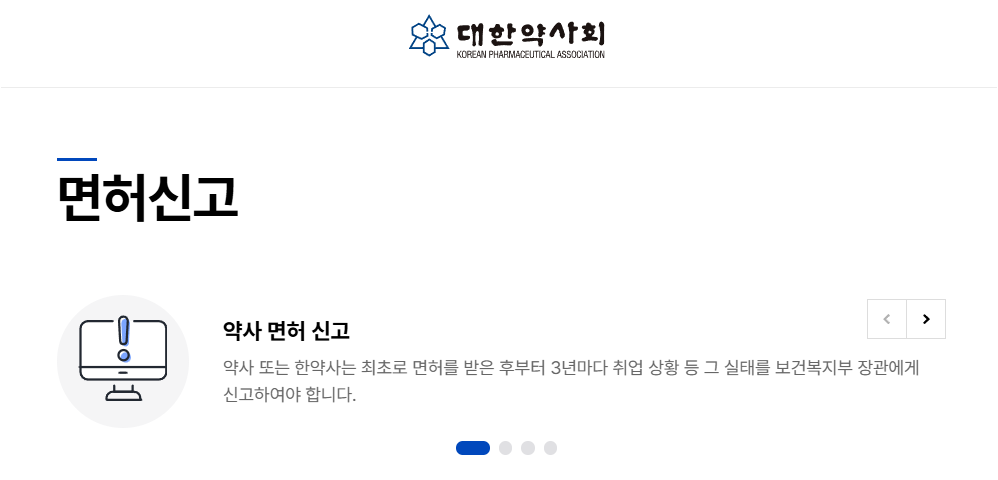 대한약사회 약사 면허신고시스템 https://license.kpanet.or.kr