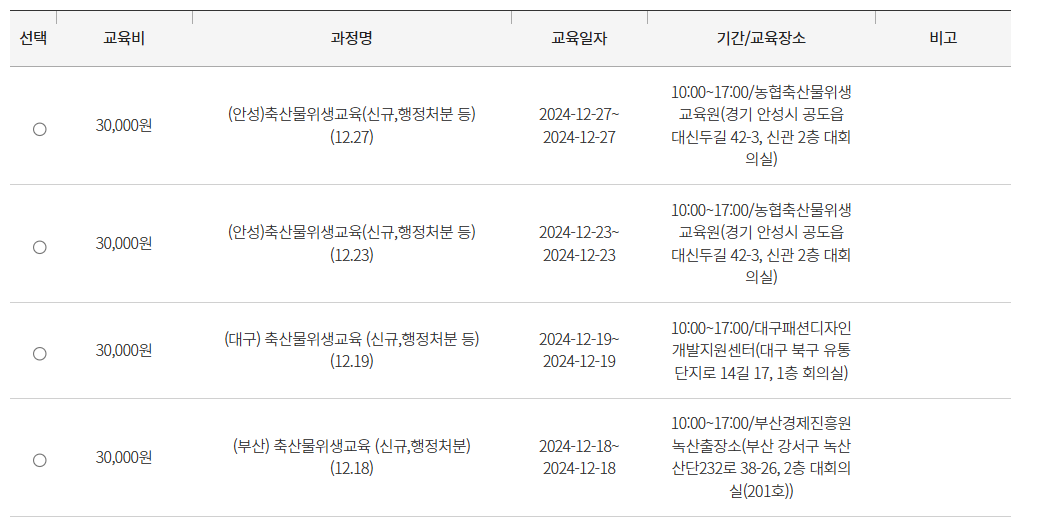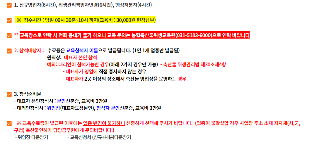 축산물 위생 교육 신청 방법