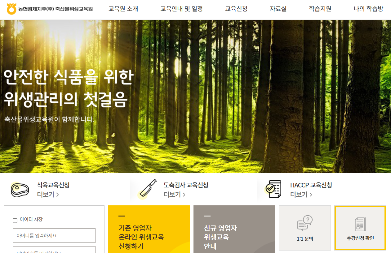 1. 농협 축산물위생교육원 홈페이지 방문