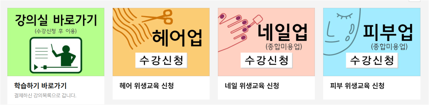대한미용사회 중앙회에서는 미용사들이 매년 의무적으로 받아야 하는 위생교육을 온라인으로 제공하는 사이트입니다. 위생교육은 법정의무교육으로 미이수시 과태료가 부과됩니다. 해당 사이트 바로가기는 다음과 같습니다.