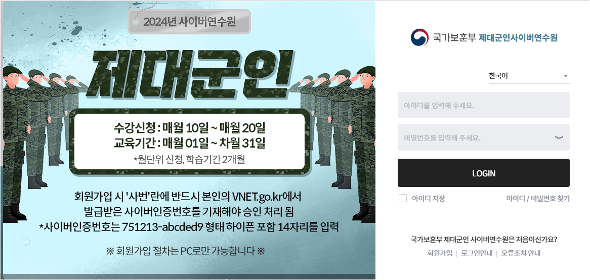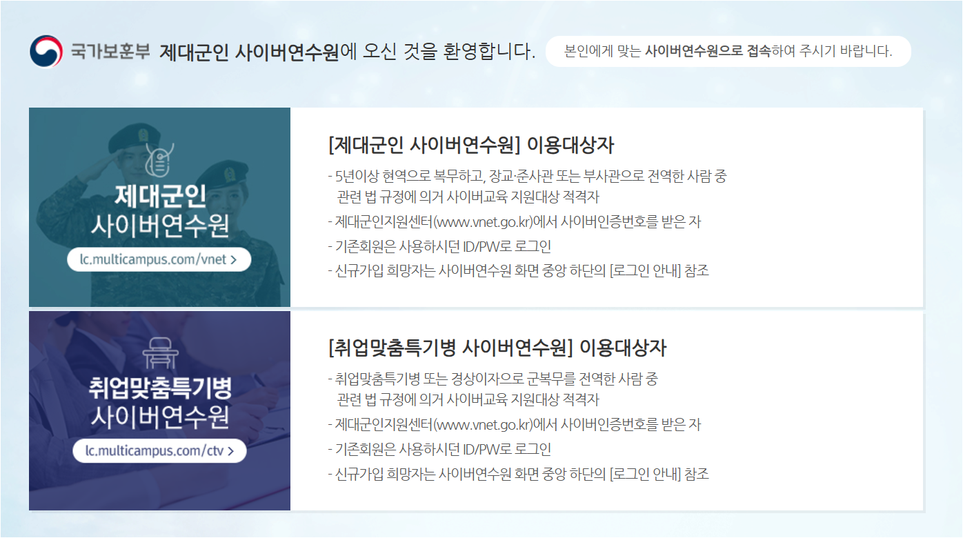 제대군인지원센터 사이버연수원 바로가기 :