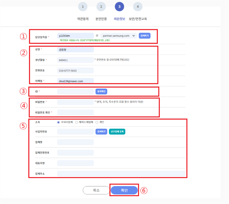 - 기본 정보 입력 (이름, 전화번호, 이메일 등)