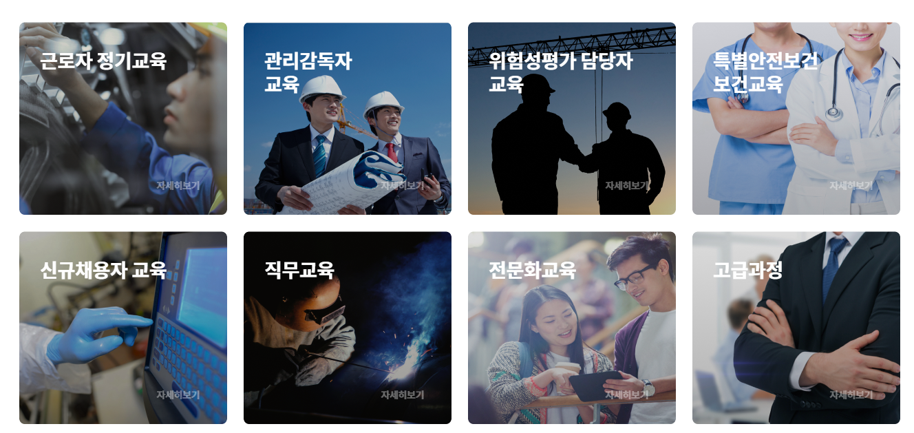 - 산업안전보건교육 : 사업장에서 반드시 이수해야 하는 법정 교육 과정입니다.