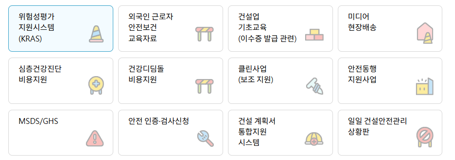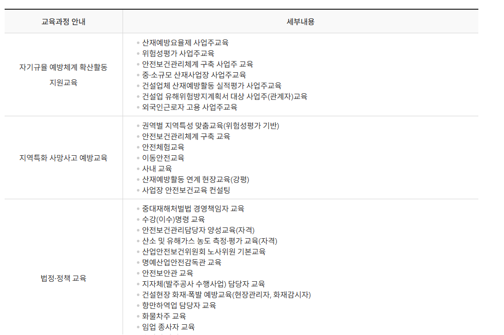 근로자의 안전 의식을 높이기 위한 교육 및 훈련 프로그램도 홈페이지에서 신청할 수 있습니다. 다양한 온라인 교육 과정과 현장 교육 프로그램이 마련되어 있어, 필요에 따라 선택해 참여할 수 있습니다.
