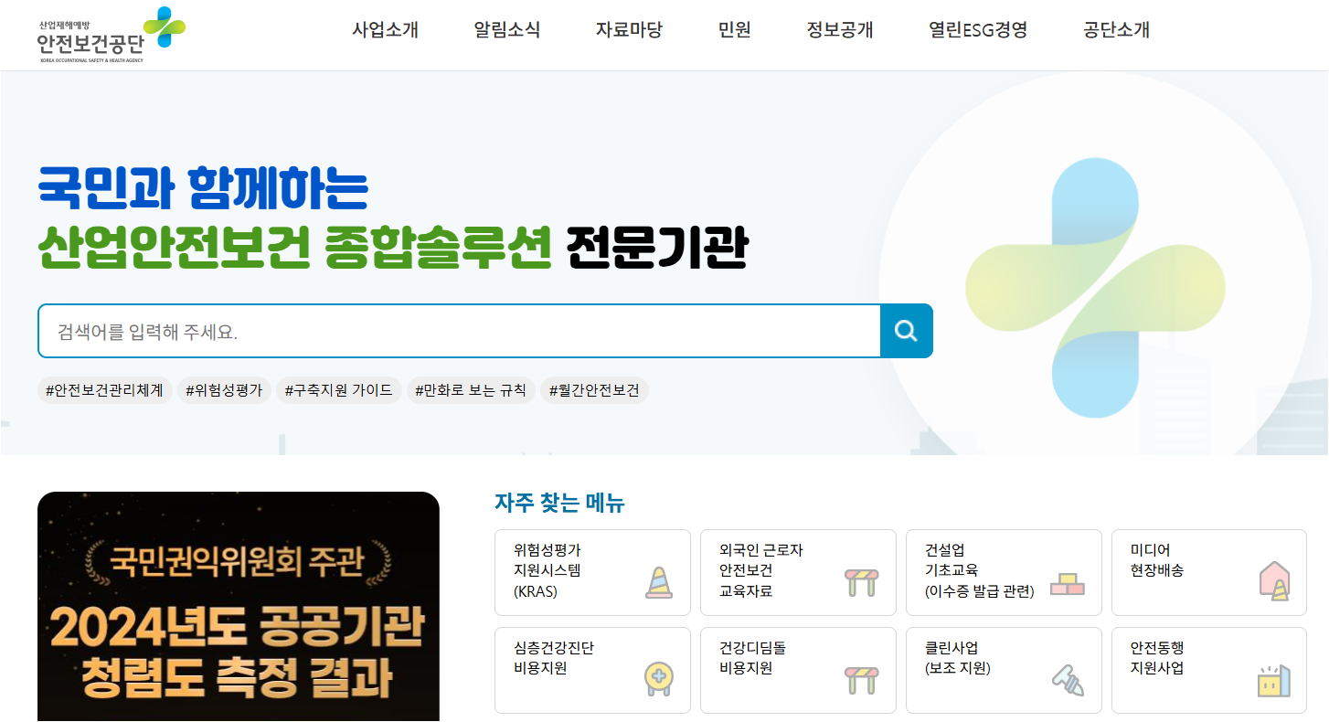 안전보건공단 홈페이지는 산업현장에서 근로자의 안전을 지키고 재해를 예방하는 데 중요한 역할을 합니다. 산업안전과 관련된 다양한 정보와 교육 프로그램, 법령 자료 등을 제공하는 만큼 적극적으로 활용해 사업장 내 안전문화를 조성해 보세요.