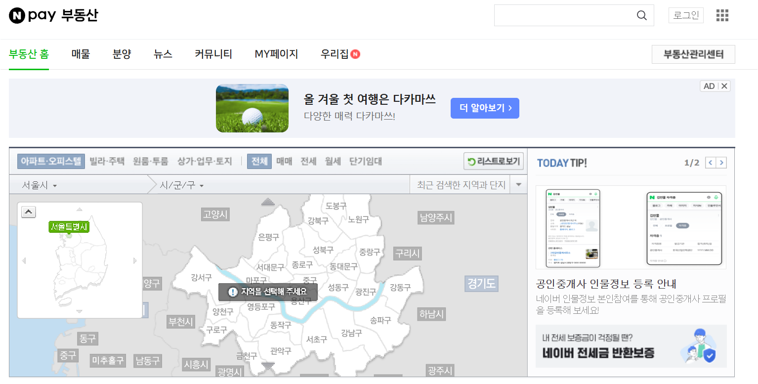 - 사이트 접속: 네이버 부동산에 접속합니다.