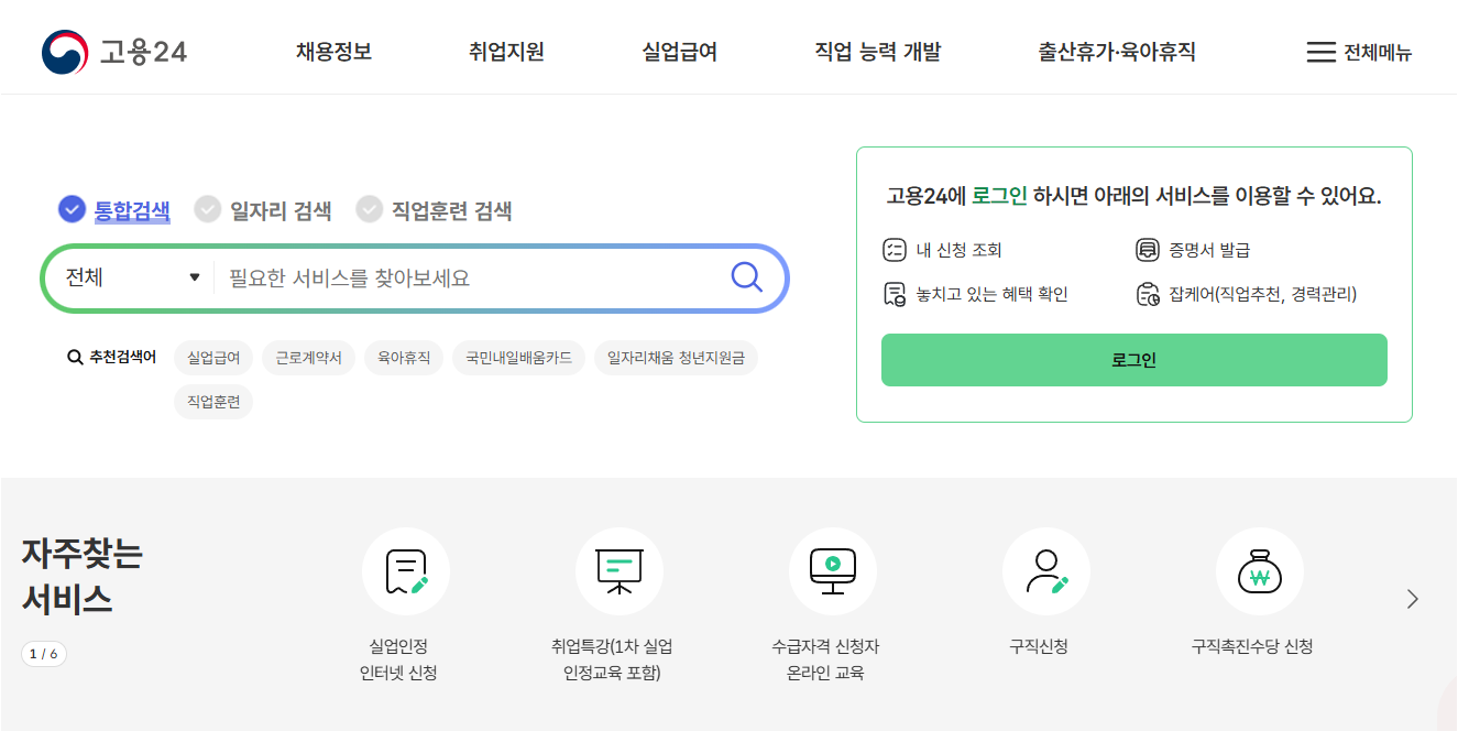 - 워크넷 홈페이지(https://www.work24.go.kr/)에 접속합니다.