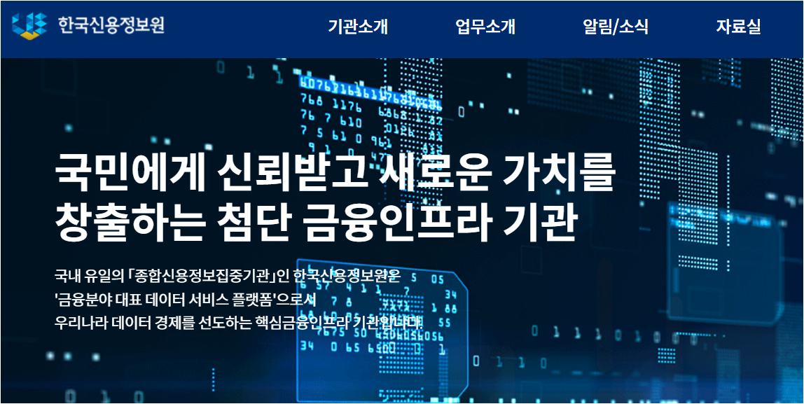 신용정보원 온라인 신청시스템은 은행, 카드사, 보험사, 증권사, 여신전문 금융기관, 저축은행등의 금융기관이 제공하는 신용정보와 공공정보를 관리하여 정보를 제공합니다. 해당 사이트 바로가기는 다음과 같습니다.