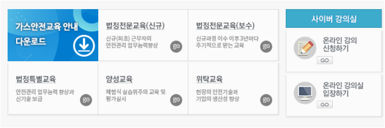 - 가스 안전 교육 신청 및 다양한 교육 자료를 열람할 수 있습니다.