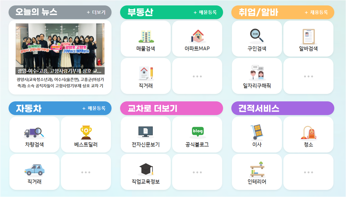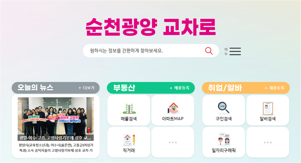 순천 교차로신문은 지역 주민들에게 없어서는 안 될 정보 플랫폼입니다. 부동산, 구인구직, 중고 거래 등 생활에 필요한 정보를 빠르게 얻고 싶다면 순천 교차로신문 바로가기를 통해 쉽게 접속해 보세요. 언제 어디서든 순천의 다양한 소식을 한눈에 확인할 수 있습니다.