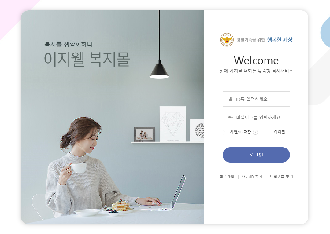 - '복지 서비스' 메뉴에서 원하는 복지 혜택 선택