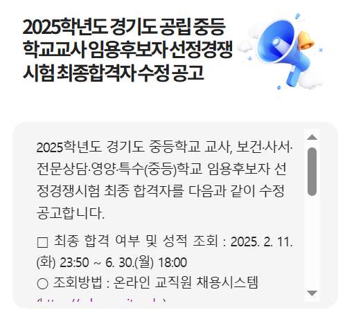 최종 합격자는 서울시교육청 홈페이지 및 채용 시스템에서 발표됩니다.