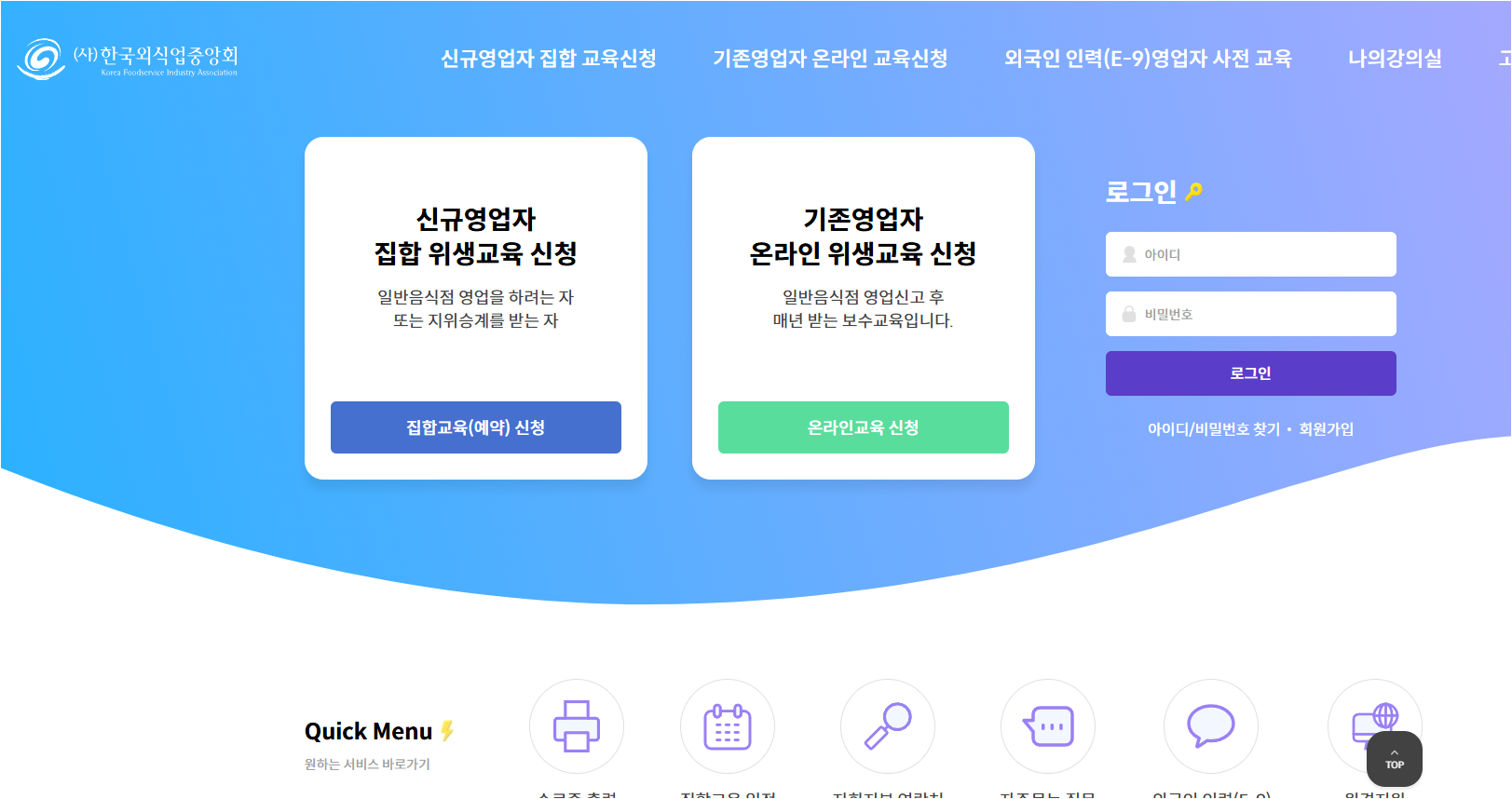 한국외식업중앙회 위생교육 :