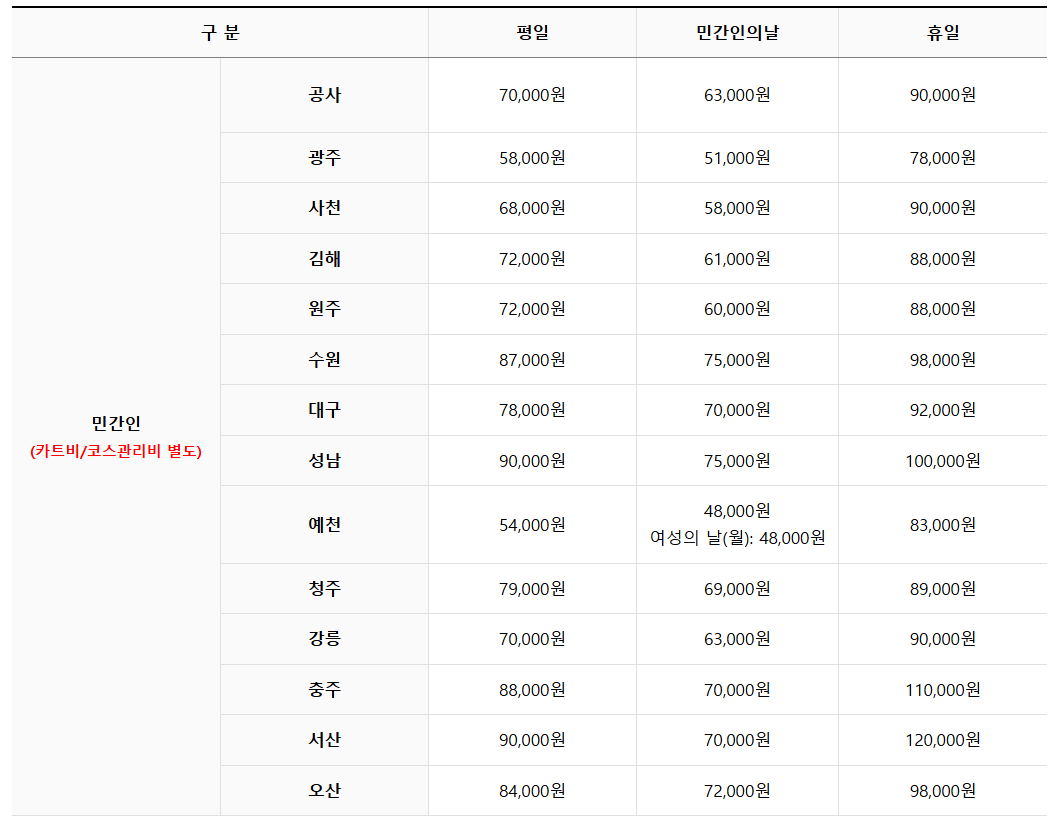 이용 요금은 회원 유형과 예약 시간대에 따라 다르며, 자세한 요금 안내는 공군복지시설예약체계 요금안내 페이지에서 확인 가능합니다.