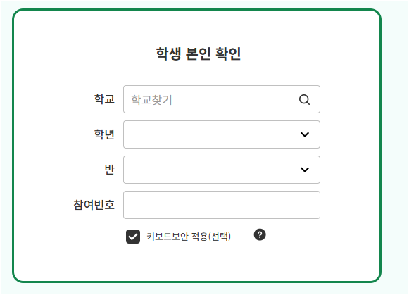 - 학생 정보 입력: 자녀의 학교, 학년, 반, 이름, 생년월일 등을 입력하여 본인 확인을 진행합니다.