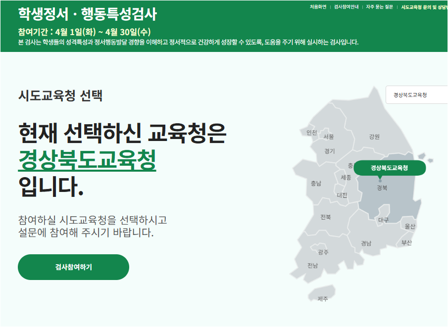 학생의 정서와 행동 특성을 이해하고, 필요한 지원을 제공하기 위해 매년 실시되는 학생정서·행동특성검사는 교육부 주관으로 전국 초·중·고등학교에서 시행됩니다. 홈페이지 주소는 다음과 같습니다.