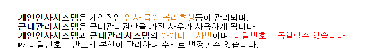 -비밀번호 변경: 최초 로그인 후 본인이 원하는 비밀번호로 변경해야 하며, 주기적인 변경이 권장됩니다.