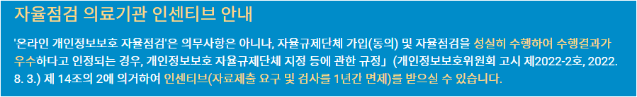 대한의사협회 자율점검은 병의원 운영 중 의료법, 개인정보보호법, 감염관리 등 다양한 법규를 준수할 수 있도록 체계적으로 관리하는 사이트입니다. 해당 사이트 바로가기는 다음과 같습니다.