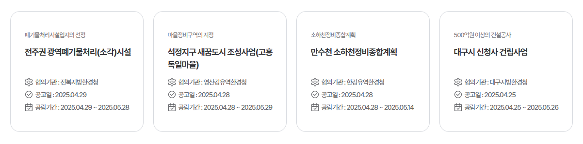 협의통계 제공: 환경영향평가 협의 현황과 통계를 확인할 수 있습니다.