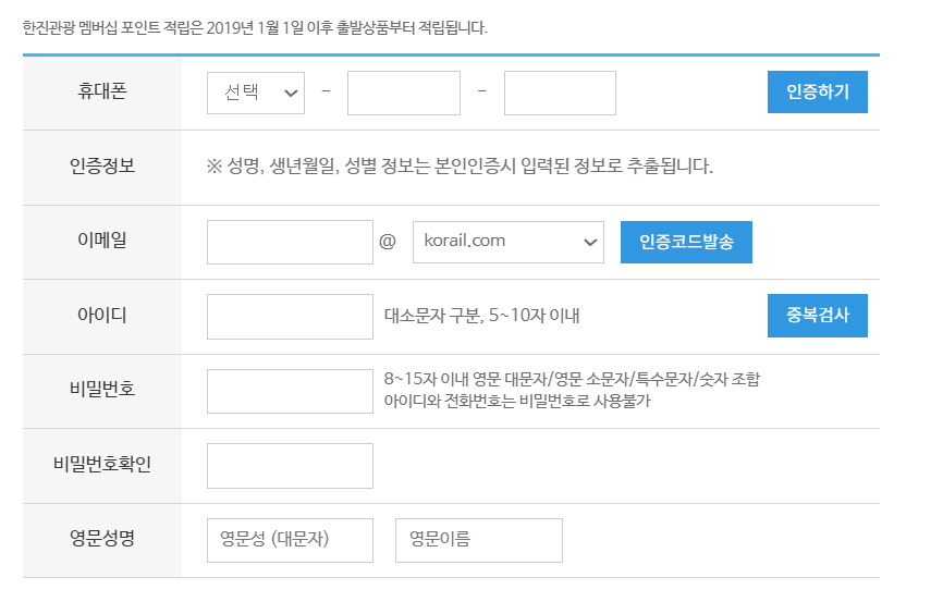 가입은 휴대폰 본인인증 절차를 완료한 후 이메일 인증코드를 입력하시고 영문이름과 아이디 비번을 입력하여 가입하면 됩니다.