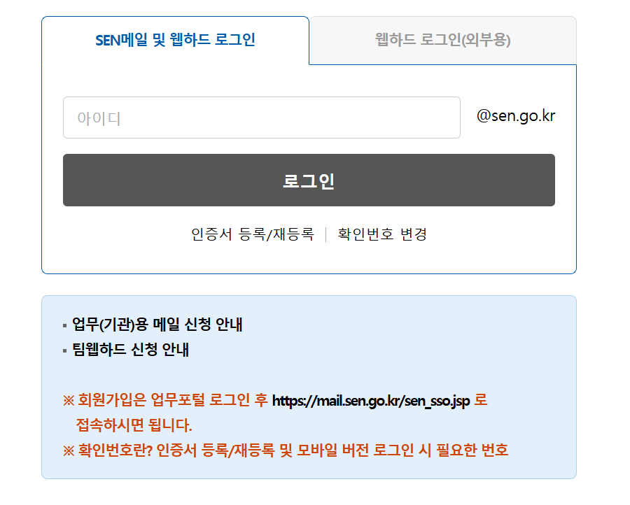 SEN메일은 인터넷 웹브라우저를 통해 손쉽게 접속할 수 있습니다.아래는 접속 방법입니다.