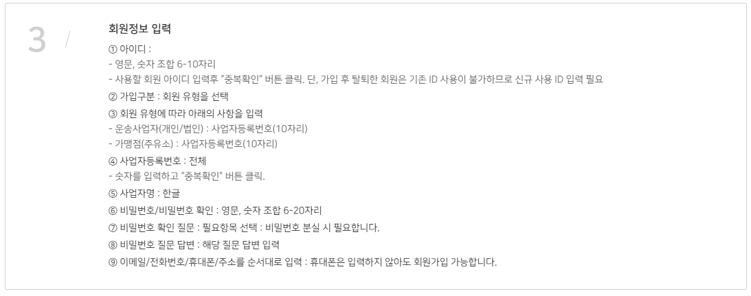 - 운송사업자 로그인: 사업자등록번호 및 공인인증서(또는 공동인증서)를 통해 로그인합니다.
