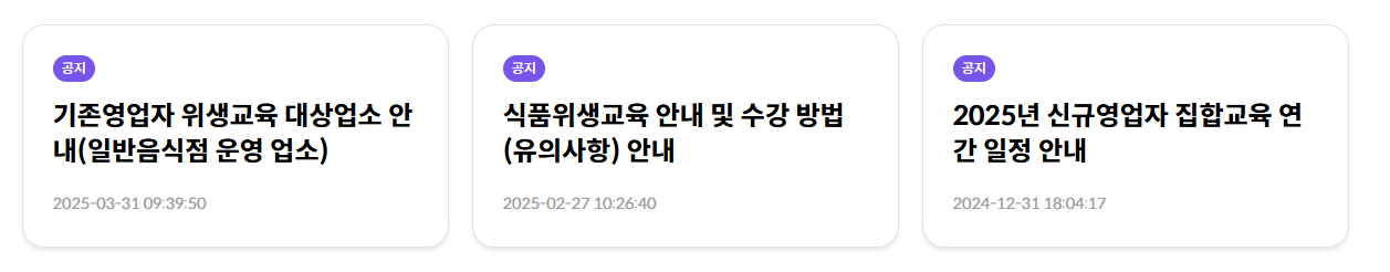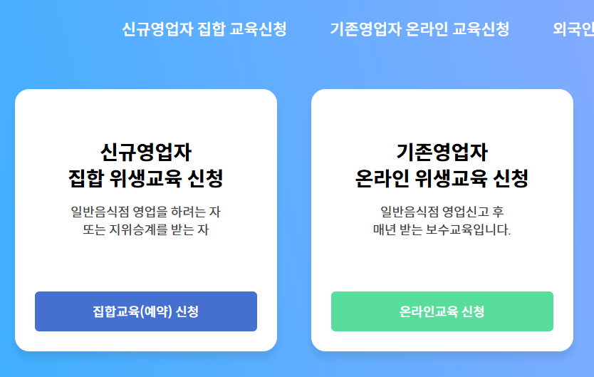 - 영업 신고 전 교육을 완료해야 하며, 미이수 시 영업신고가 불가합니다.