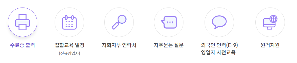 - 교육 완료 후 발급되는 수료증은 영업 신고서류와 함께 제출해야 합니다.