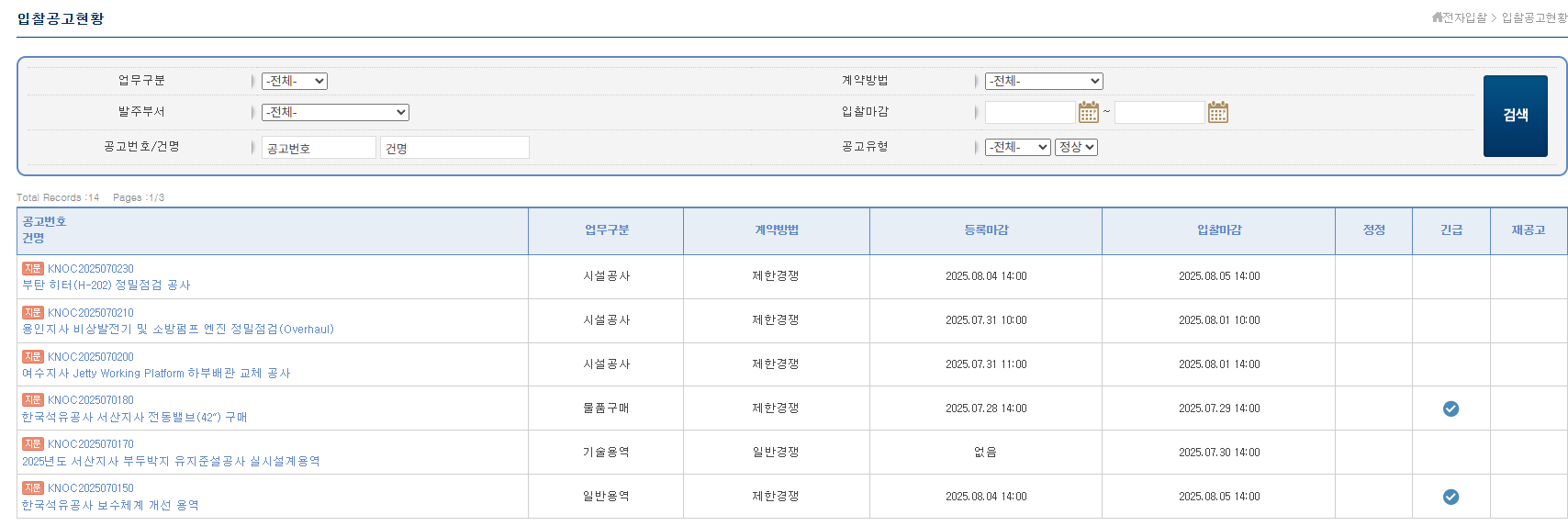 한국석유공사 전자조달 시스템 (https://ebid.knoc.co.kr)