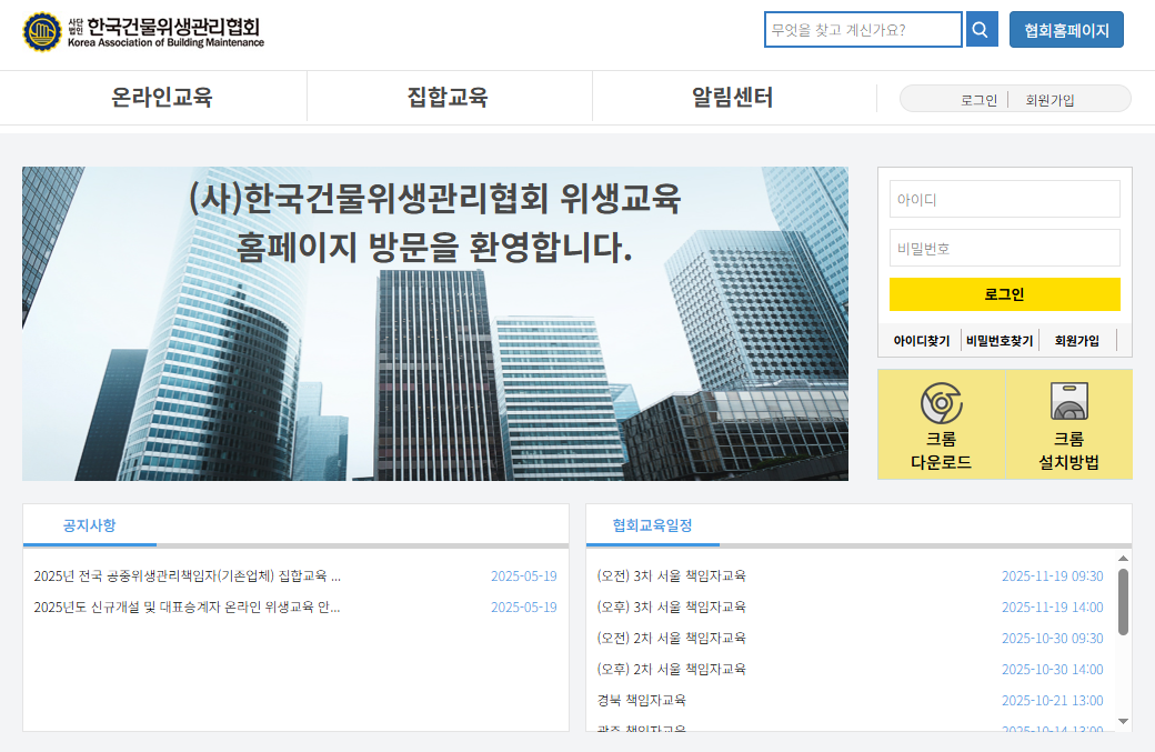 교육은 온라인과 오프라인 모두 신청이 가능합니다. 한국건물위생관리협회 공식 교육사이트인 KSCMA 교육시스템에 접속하면 연간 교육 일정, 수강료, 교육장 위치 등을 확인할 수 있으며, 회원 가입 후 본인 인증을 거쳐 수강 신청이 가능합니다.