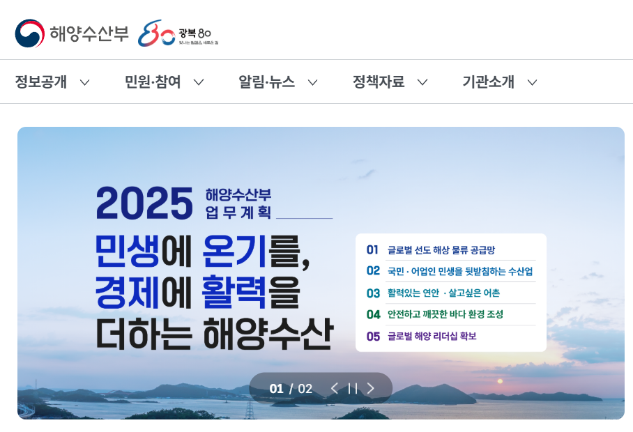 해양수산부 홈페이지는 단순한 정보 전달을 넘어, 국민과 정부가 소통하는 창구로 기능합니다. 가장 많이 활용되는 메뉴는 다음과 같습니다.
