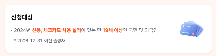 -2024년에 본인 명의의 신용카드 또는 체크카드 사용 실적이 있어야 합니다.