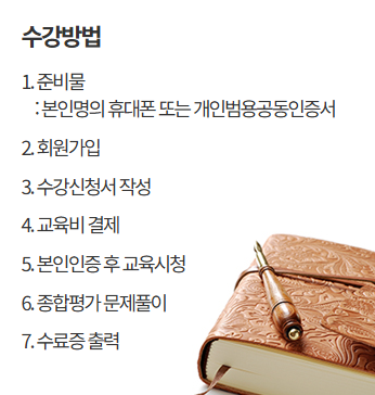 모든 과정은 수강 완료 후 온라인 시험을 통해 평가되며, 합격 시에는 교육 이수증이 발급됩니다. 해당 이수증은 관리감독기관에 제출하거나, 정기검사 시 증빙서류로 사용됩니다.