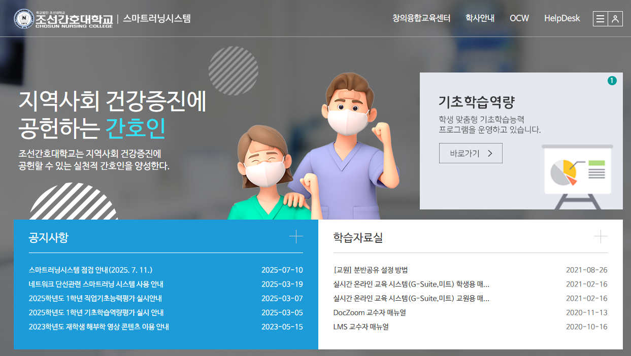조선간호대학교 스마트러닝시스템은 학생들이 시간과 장소에 구애받지 않고 학습할 수 있도록 지원하는 온라인 교육 플랫폼으로, 조선간호대학교 재학생 및 교수진 모두에게 필수적인 학습 도구입니다.