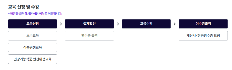 식품위생교육은 대한영양사협회 교육 포털인 영양사교육센터를 통해 신청할 수 있습니다. 회원 가입 후 본인의 소속과 자격정보를 등록하면, 수강 가능한 교육 목록을 확인할 수 있으며, 온라인 강의의 경우 정해진 기간 내 자유롭게 수강 가능합니다.