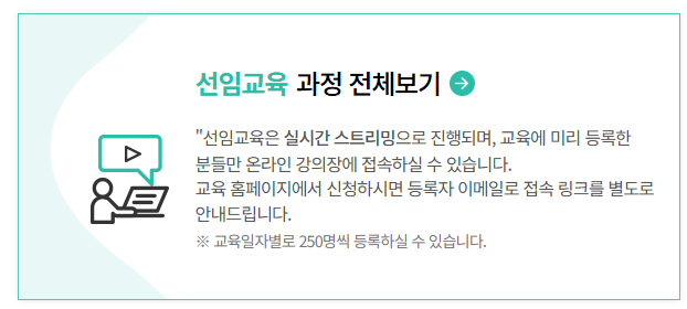 교육은 선임교육과 보수교육 두 가지로 구분되어 있으며, 실시간 온라인 스트리밍 방식으로 진행됩니다. 주요 교육 내용은 진단용 방사선 안전관리자가 반드시 알고 있어야 할 사항, 관련 규칙과 법령 해설, 영상의학검사의 최적화 및 환자 선량 저감 방법, 방사선 관계 종사자 교육 의무 등이 포함됩니다.