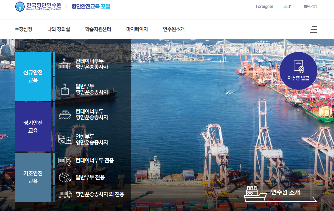 항만안전교육 포털 홈페이지 (www.kptiedu.kr)