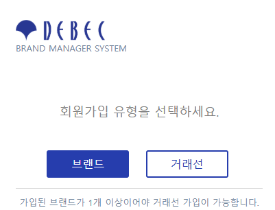회원가입 유형을 선택하세요. 브랜드 거래선 가입된 브랜드가 1개 이상이어야 거래선 가입이 가능합니다. 취소