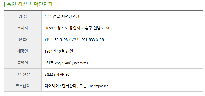 용인과 아산에 위치한 경찰체력단련장은 경찰관과 가족, 그리고 일정 자격을 갖춘 회원들이 이용할 수 있는 복지형 골프장입니다. 최근에는 온라인 통합예약시스템이 운영되어 회원 가입 후 손쉽게 예약과 확인이 가능합니다. 두 곳 모두 9홀 코스로 운영되고 있습니다.