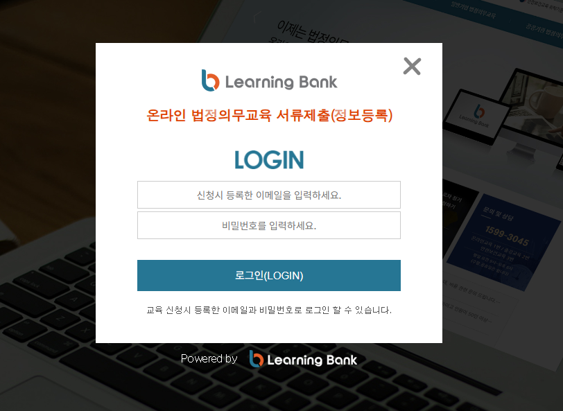 러닝뱅크 스마트러닝센터는 최신 IT 기반의 온라인 학습 환경을 제공하는 사이버 교육 플랫폼입니다. 법정 의무교육, 안전·보건 교육, 개인정보 보호, 성희롱 예방 등 기업에 필요한 필수 교육부터 개인 역량 강화 과정까지 다양한 콘텐츠가 마련되어 있어 사용자들이 필요에 맞는 과정을 선택할 수 있습니다.
