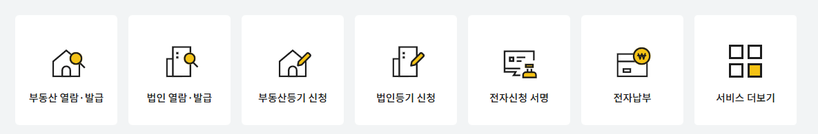 인터넷등기소에서 제공하는 대표적인 서비스는 다음과 같습니다.