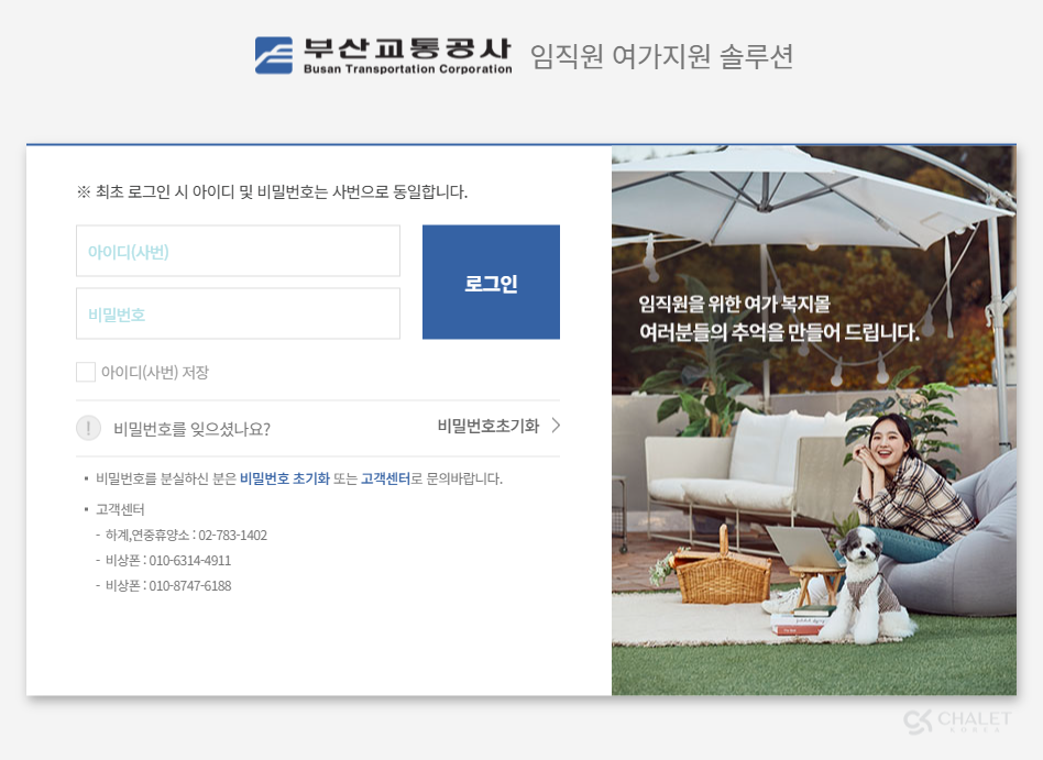 부산교통공사 임직원 여가지원 솔루션 하계휴양소 예약서비스 :