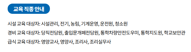 - 건설기계 조종사 안전교육: 건설기계 조종사 면허자를 대상으로 한 안전보건 교육이 진행됩니다.