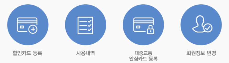 홈페이지에서는 등록된 카드의 잔액 확인, 충전내역 및 사용내역 조회, 할인 등록, 환불 신청 등 다양한 기능을 제공합니다.