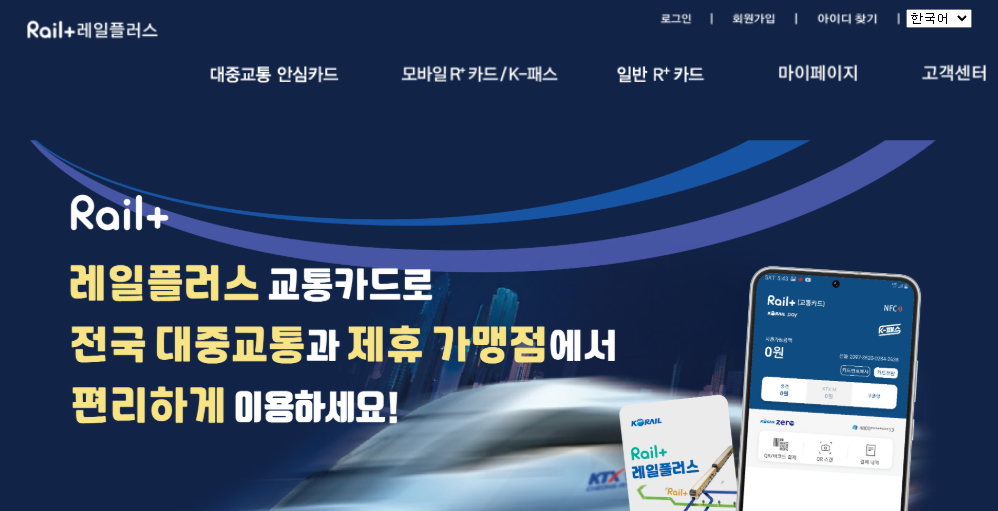 레일플러스 홈페이지는 한국철도공사(코레일)에서 제공하는 전국호환 선불교통카드 서비스로, 대중교통뿐 아니라 철도, 택시 등 다양한 결제에 사용할 수 있는 플랫폼입니다. 해당 사이트 바로가기는 다음과 같습니다.