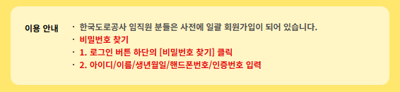 먼저 사이트에 접속한 뒤 회사에서 부여받은 사번을 입력해 로그인합니다. 별도의 회원가입 절차가 필요 없으며, 초기에는 비밀번호 찾기를 통해 계정 정보를 확인할 수 있습니다.