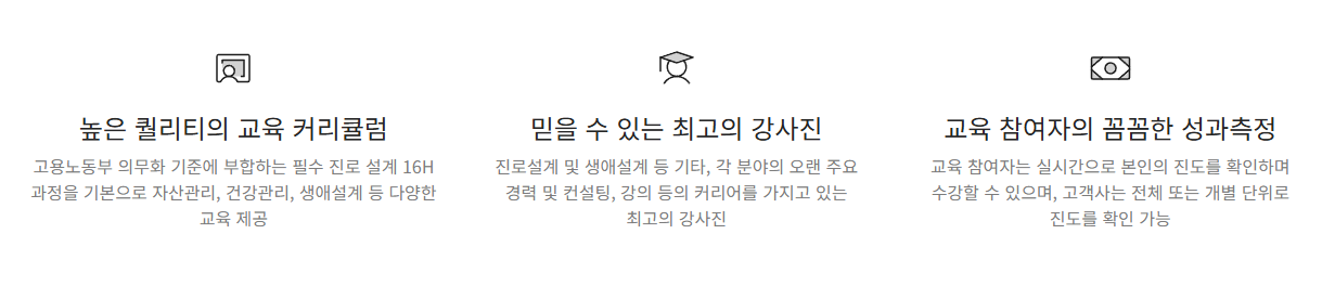 - 경력 및 생애 설계 교육: 커리어 전환, 경력 개발, 자기계발 등을 지원하는 과정이 운영됩니다.